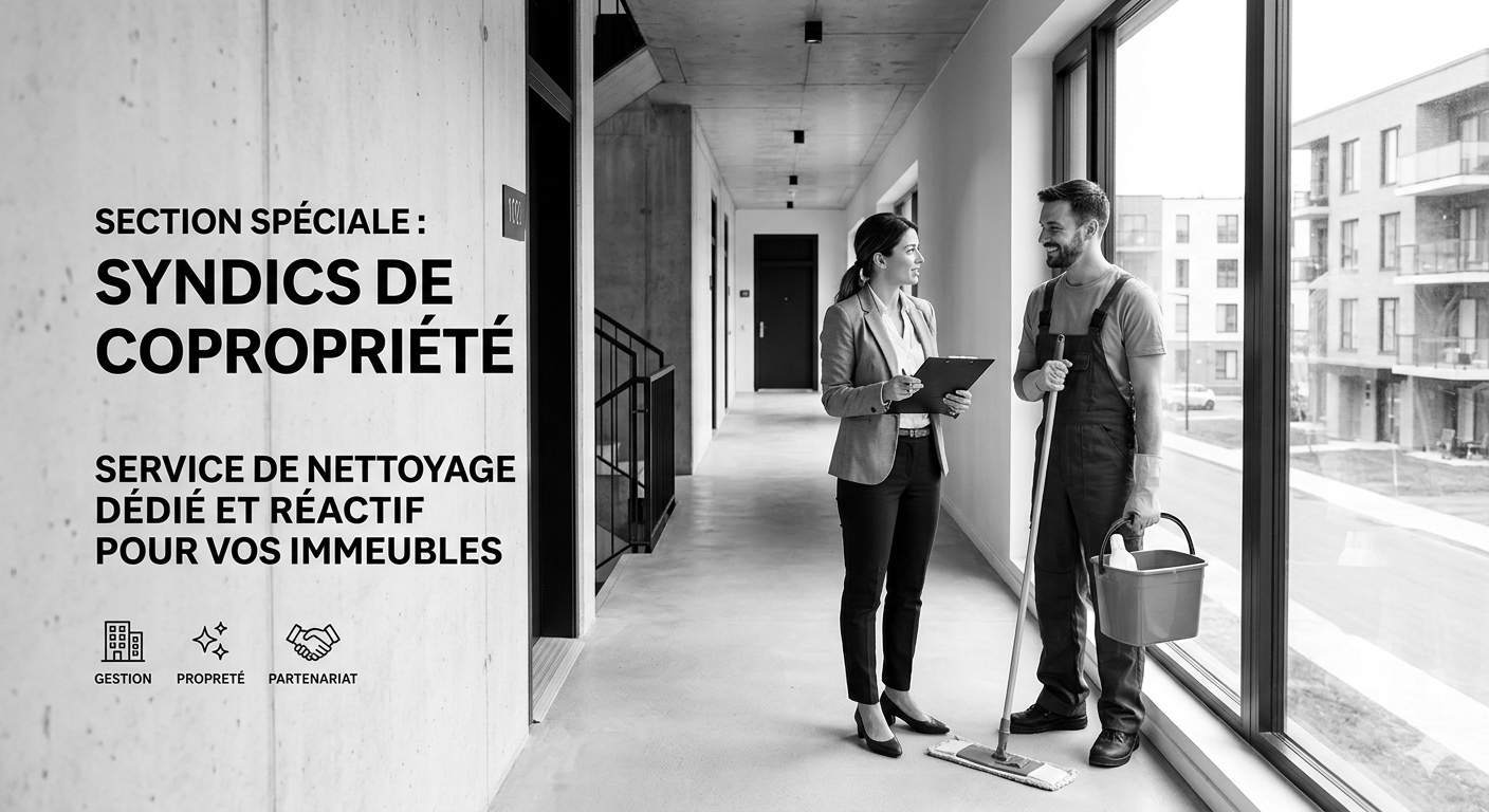 Gérer une copropriété, c'est déjà assez de boulot. Notre objectif est simple : que la propreté ne soit plus jamais un sujet de plainte lors de vos AG.